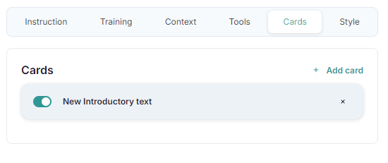Enable the Card by simply clicking the Enable button. This will make the card active and ready to display in the agent’s responses.