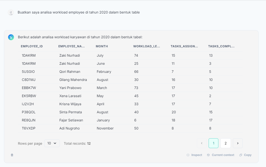 An introductory message could be: "Here is the result of the analysis we conducted, the answer is:"