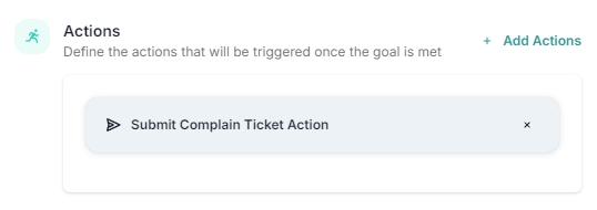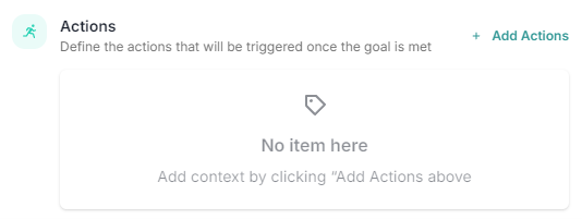 From the dropdown menu, choose the action that will be triggered once the goal is met. This could involve sending data, updating records, or initiating external workflows.