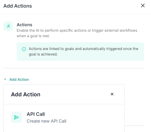 Add Action From the dropdown, select API Call to create a new API call action.