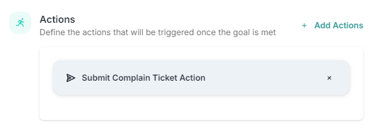 Action Execution: After the goal is completed, the SubmitComplaintTicket action is triggered, sending all complaint details to the external system for processing.