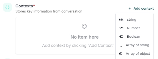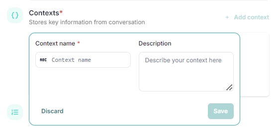 Context Variables Cannot Be Edited: Once a context variable is created, it is immutable, meaning it cannot be modified. If a different context or an update is required, you must add a new variable instead of editing an existing one. Editing an existing context variable could lead to inconsistencies, as previously stored data may not align with the new name or description.