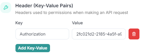 "Authorization","Content-Type", or other custom headers specific to the API.Value Field: Enter the corresponding value for the header key. This could be an API token, content type (e.g.,