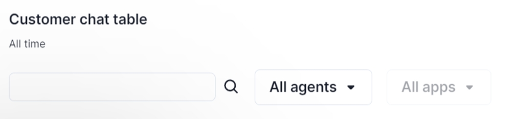 Refine table content by applying filters based on customer identity, agent, and app deployment. Use the search functionality to retrieve specific records.