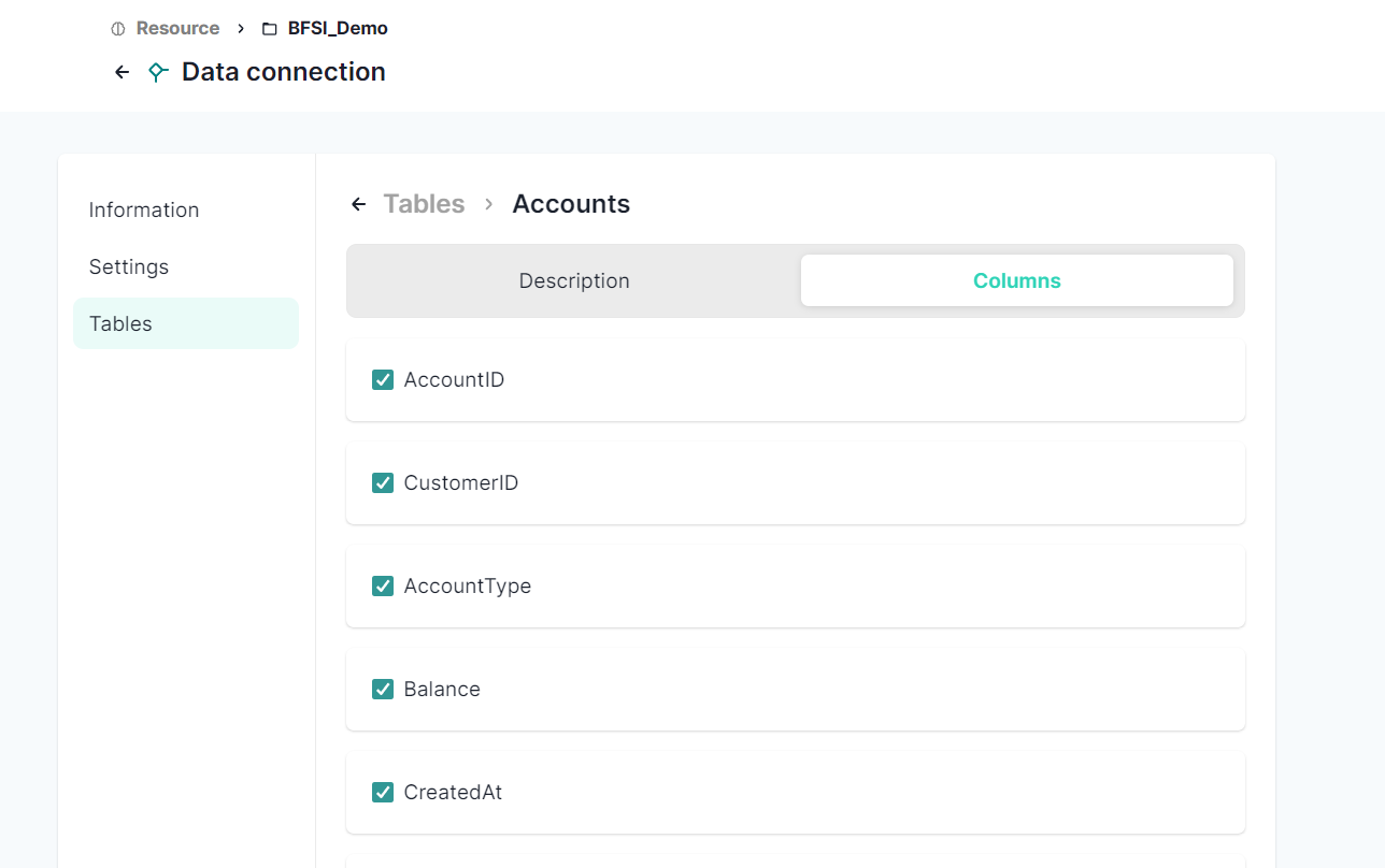 Checkbox to Enable: Users can select or enable multiple tables by using checkboxes, providing flexibility in data configuration.