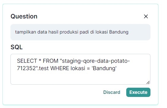 After filling in relevant questions within the context, proceed by pressing the 'Execute' button. Following the generation of questions, the system will automatically generate SQL. However, if we wish to modify the SQL query, simply click the SQL section and then make the necessary changes to the SQL query.