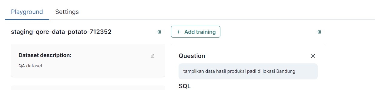 For example, we'll add a question for training. In this case, we'll inquire about rice production data in the Bandung area.