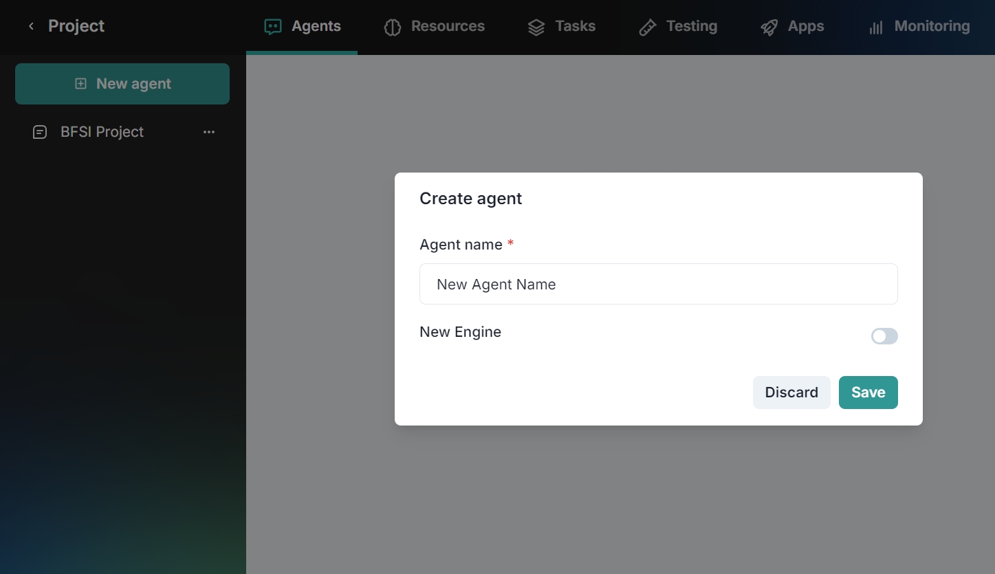 Navigate to the Agent Tab: In your project dashboard, click on the 'Agent' tab.
