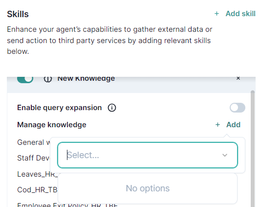 The Skill: Knowledge is now disabled, and your AI agent will not utilize the knowledge base.
